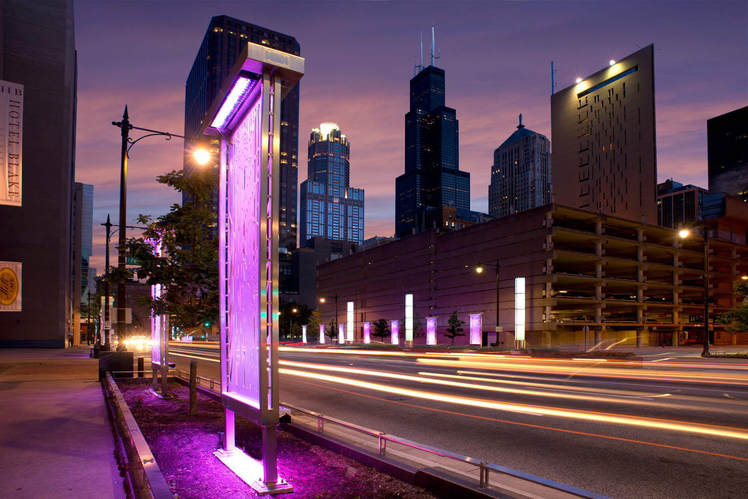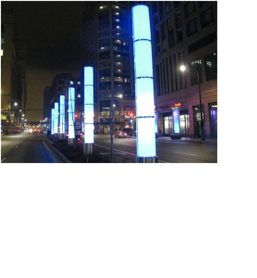 - Sixteen foot tall cylindrical decorative LED bollards were installed in the parkway median planters along the entire stretch of Congress Parkway. Each bollard consists of four sections of color changing LED tubes that has unlimited design effects.