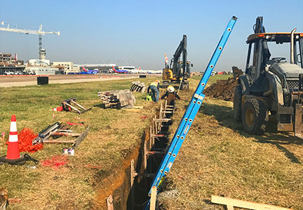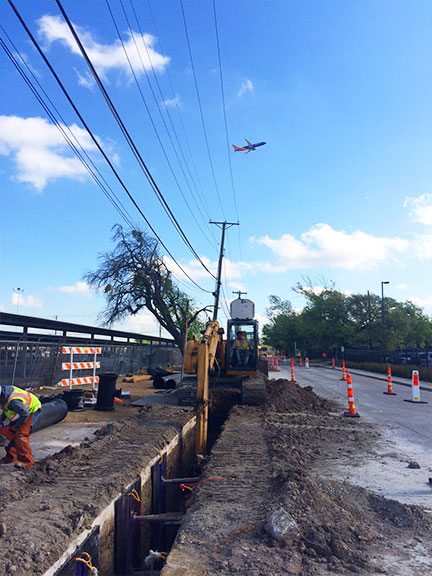 John Burns Construction Company of Texas was contracted to install waterline and sanitary sewer in and around active areas of Love Field Airport in Dallas, Texas. The purpose of the project was to abandon an existing waterline from under the active runways and reroute a new waterline and sanitary sewer around the exterior of the airport.
