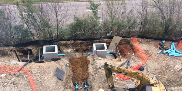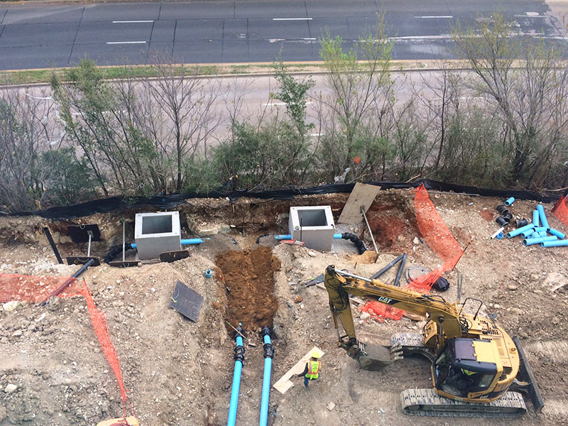 John Burns Construction Company of Texas completed the site utilities including water, sanitary sewer, storm sewer and electrical duct-bank, installing them concurrently as the tower was being erected.