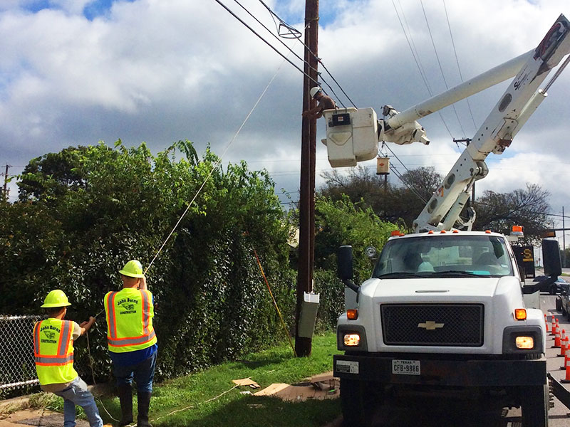 John Burns Construction Company of Texas contracted with National Service Providers to install aerial and underground fiber optics cables and 5G Cellular Radio Nodes.